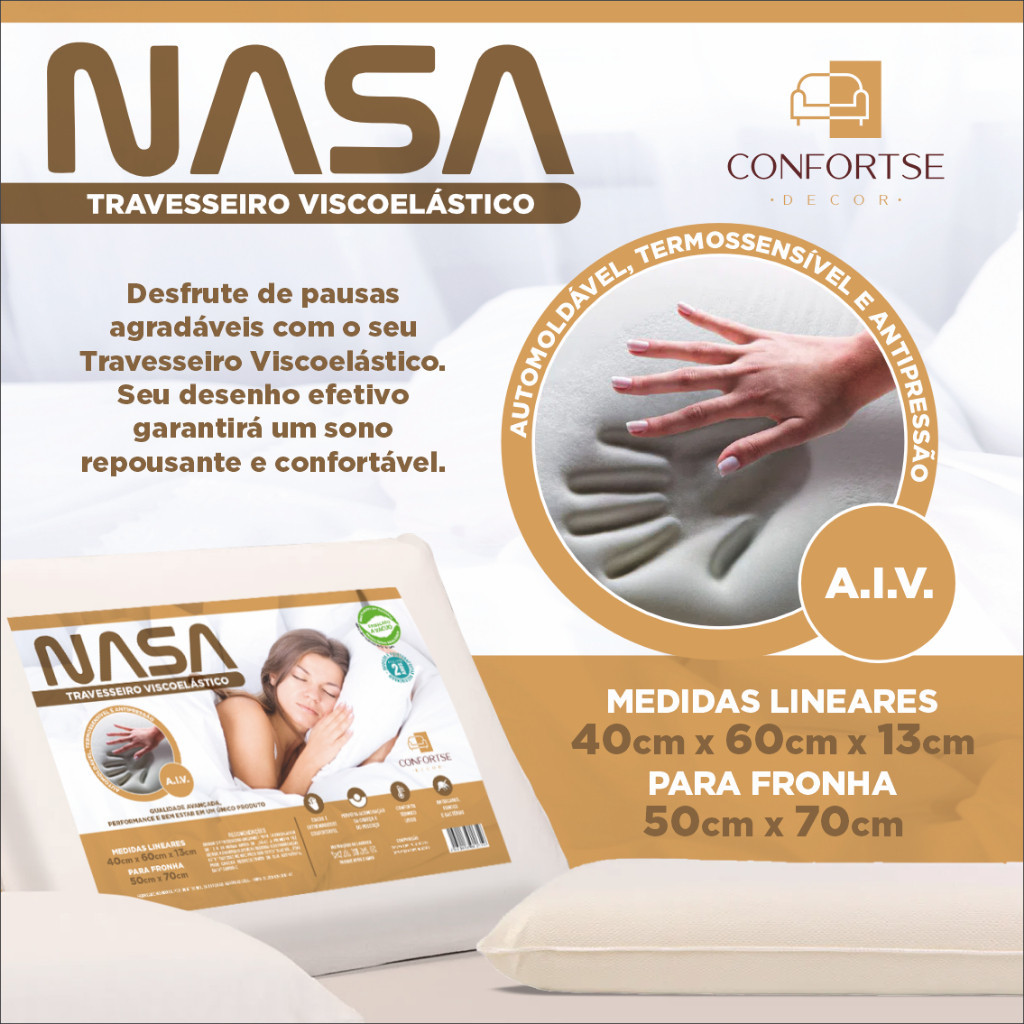 Travesseiro Nasa Alto Scout Tecnologia Fios de Carbono Anti-estresse D50 100% Visco - Lar Conforto