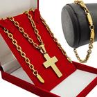 Corrente Masculina Cordão Cadeado+ Pingente Cruz + Pulseira Banhado A Ouro - Colares