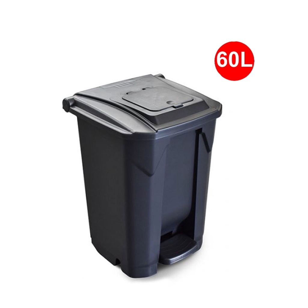 Lixeira Grande 60 Litros Preta C/ Roda e Pedal Tampa 1 Click Cesto de Lixo com 2 aberturas