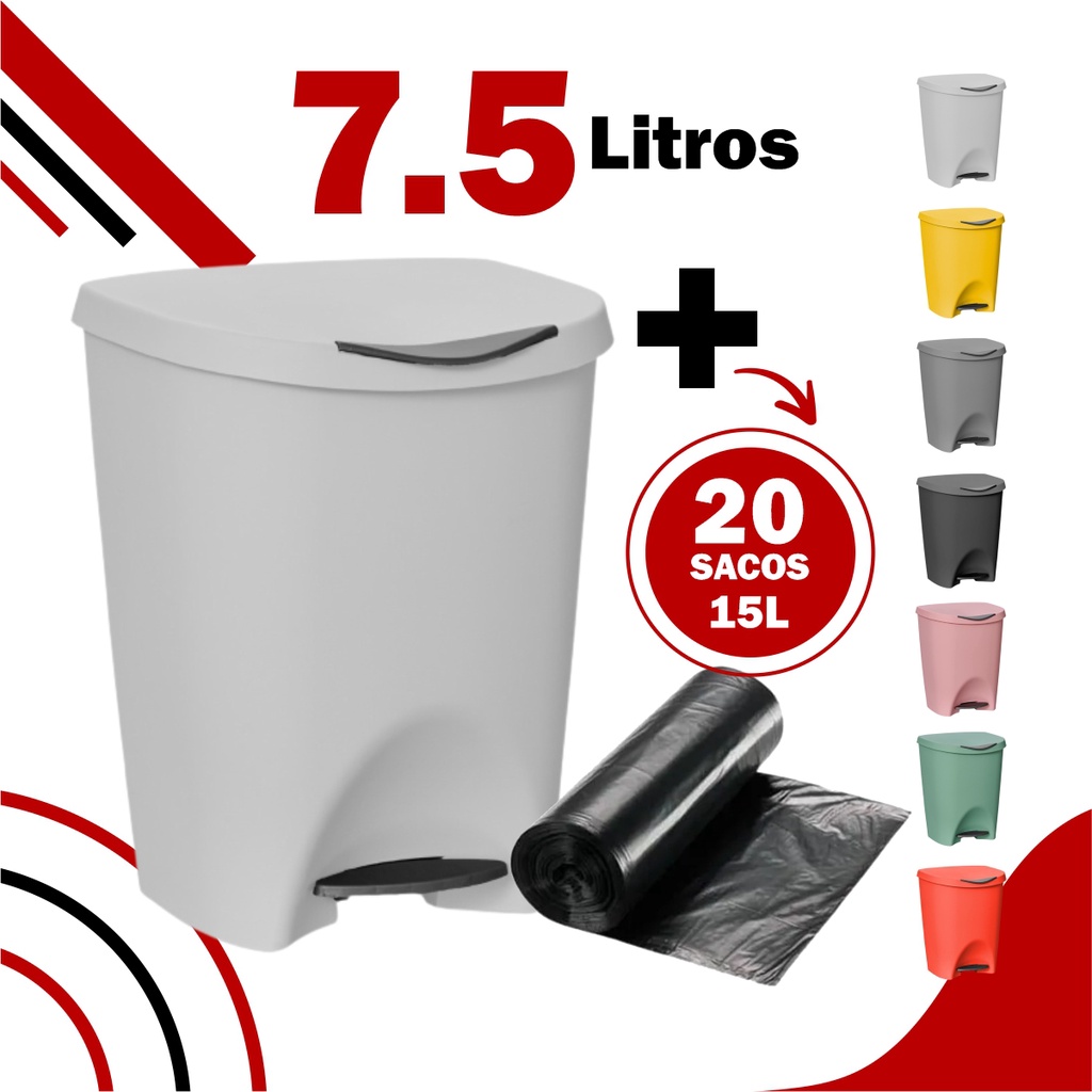 Lixeira Escritório Cozinha Banheiro C/ Pedal 7,5 Litros Plast. e Saco de Lixo