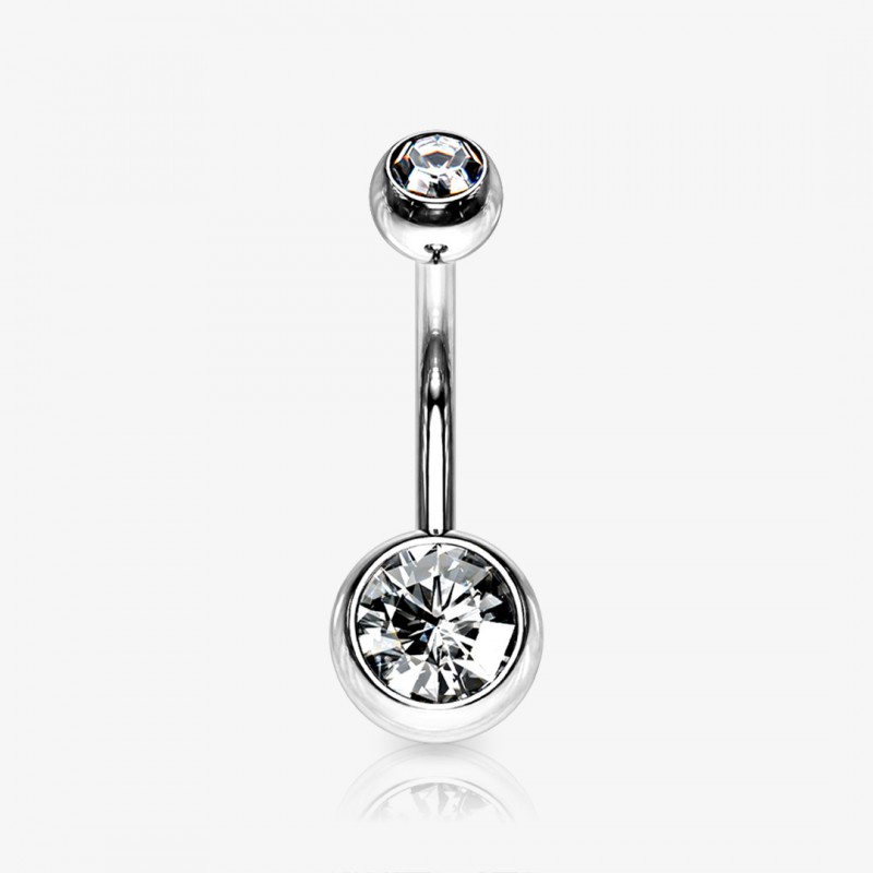 Piercing de Umbigo em Titânio Banana Prateado Dupla Zircônia