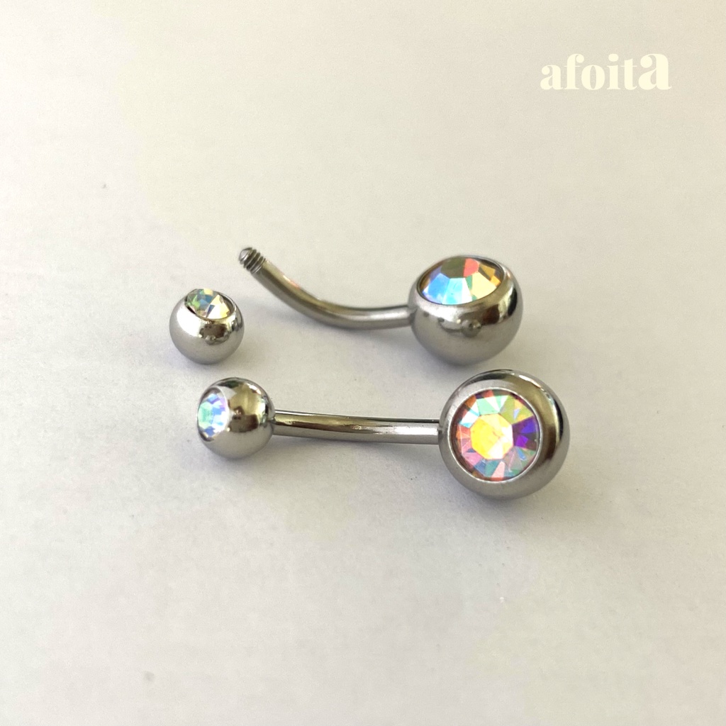 Piercing de Umbigo Duplo Strass Furta Cor Arco Iris em Aço Cirúrgico Banana Prateado