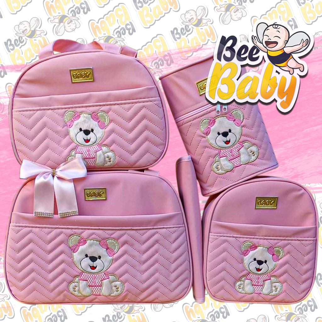 Kit Bolsa Maternidade Urso Sentado Mala para Bebê Material Térmico 5 PEÇAS Bee BABY