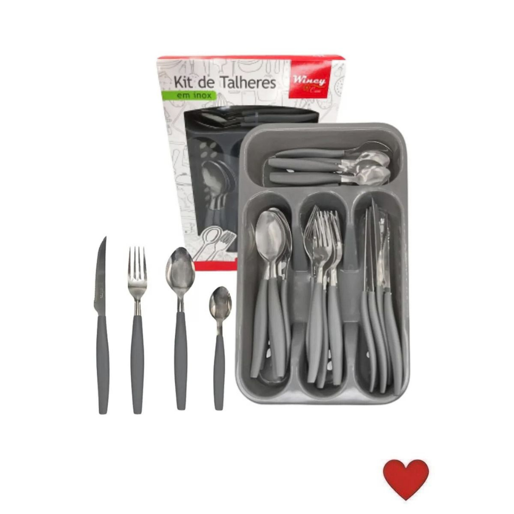 Jogo De Talheres 25 Peças Inox Garfo Faca Colher + Organizador de Gaveta
