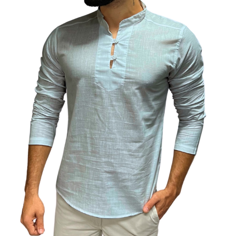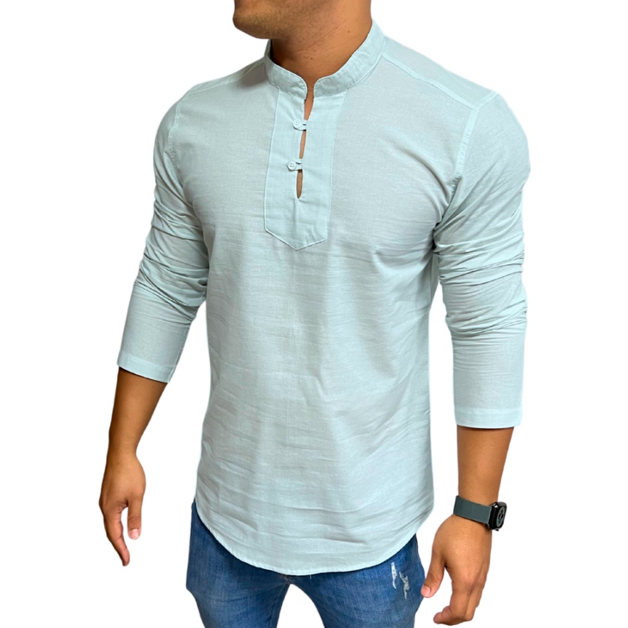 Bata Masculina De Linho Manga Longa