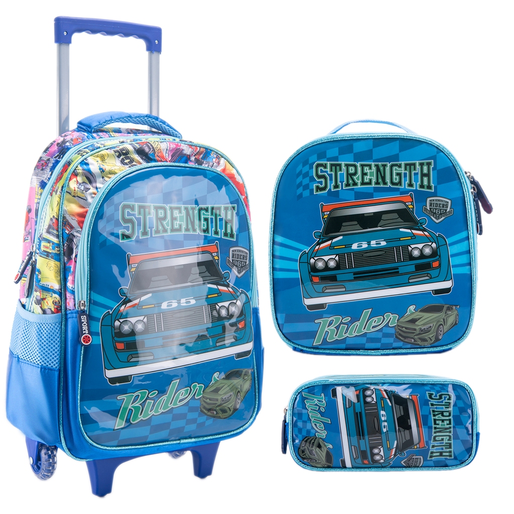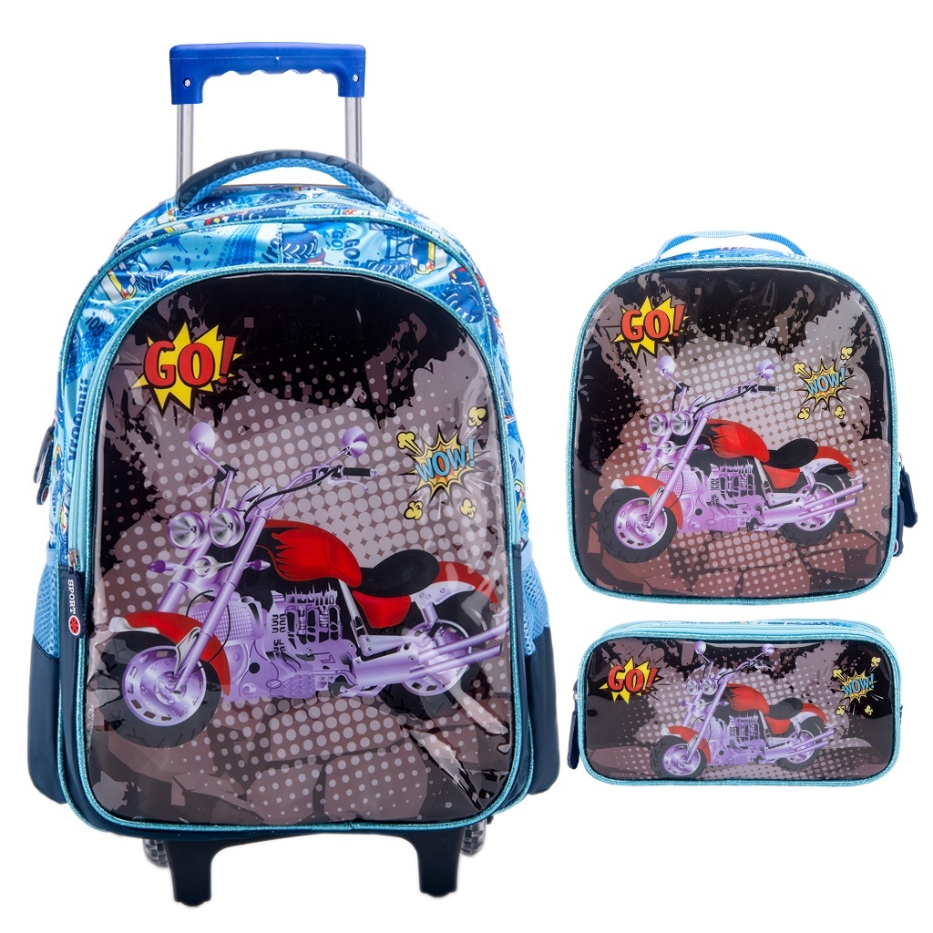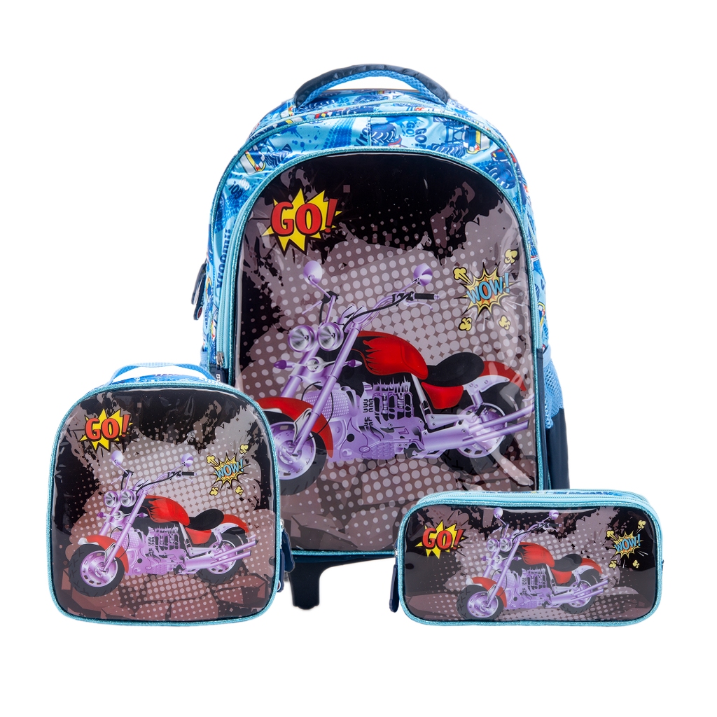 Kit Mochila Escolar Infantil de Rodinhas Menino Bolsa Resistente Impermeável Com Lancheira e Estojo BMA9712CR-KIT