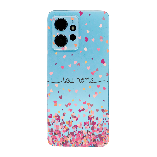 Capinha para Xiaomi RedMi Note 12 4G Anti Impacto Personalizada - Chuva de corações rosa com nome