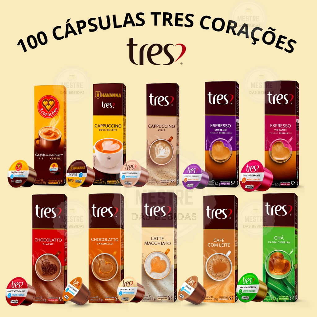 100 Cápsulas Três Coraçoes Cremosos Espressos Filtrados Chás Monte seu Kit
