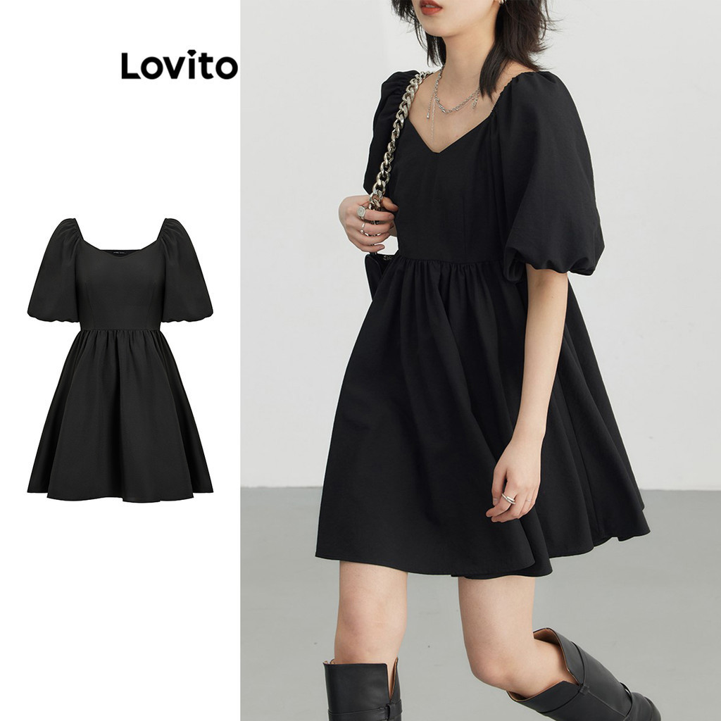 Lovito Vestido Casual Liso Franzido Em Linha A Para Mulheres L80ED357
