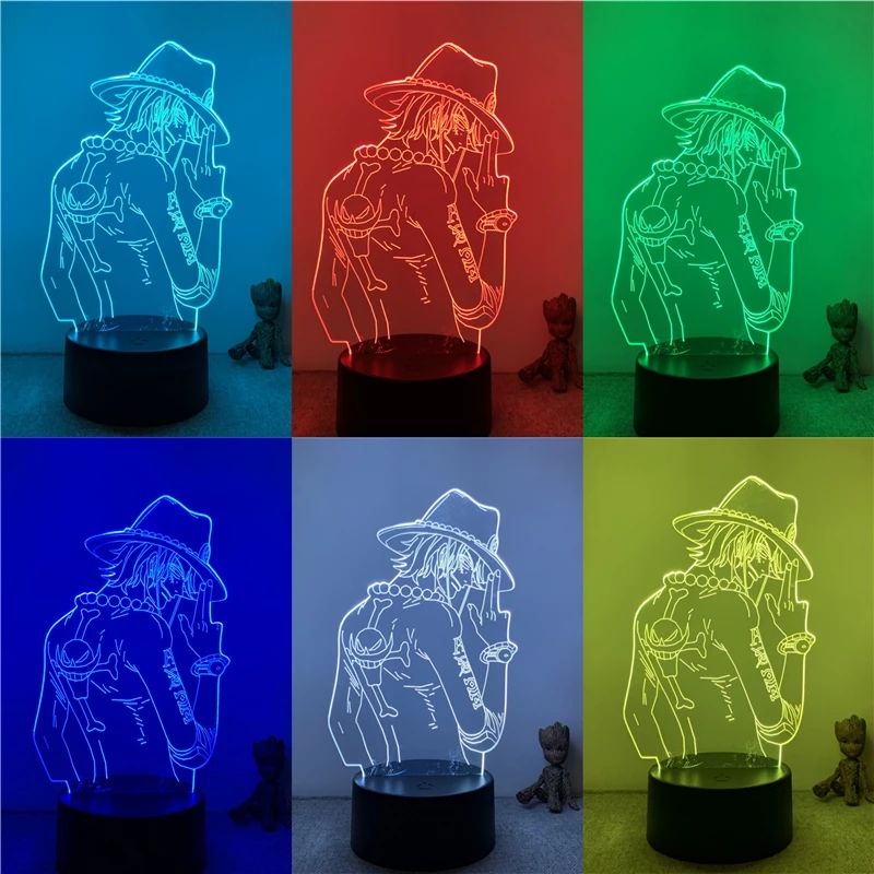 Luminária Led 16 cores, One Piece, Luffy, Sanji, Roronoa Zoro, Usopp, Tony Tony Chopper, Nico Robin, Anime, Decoração