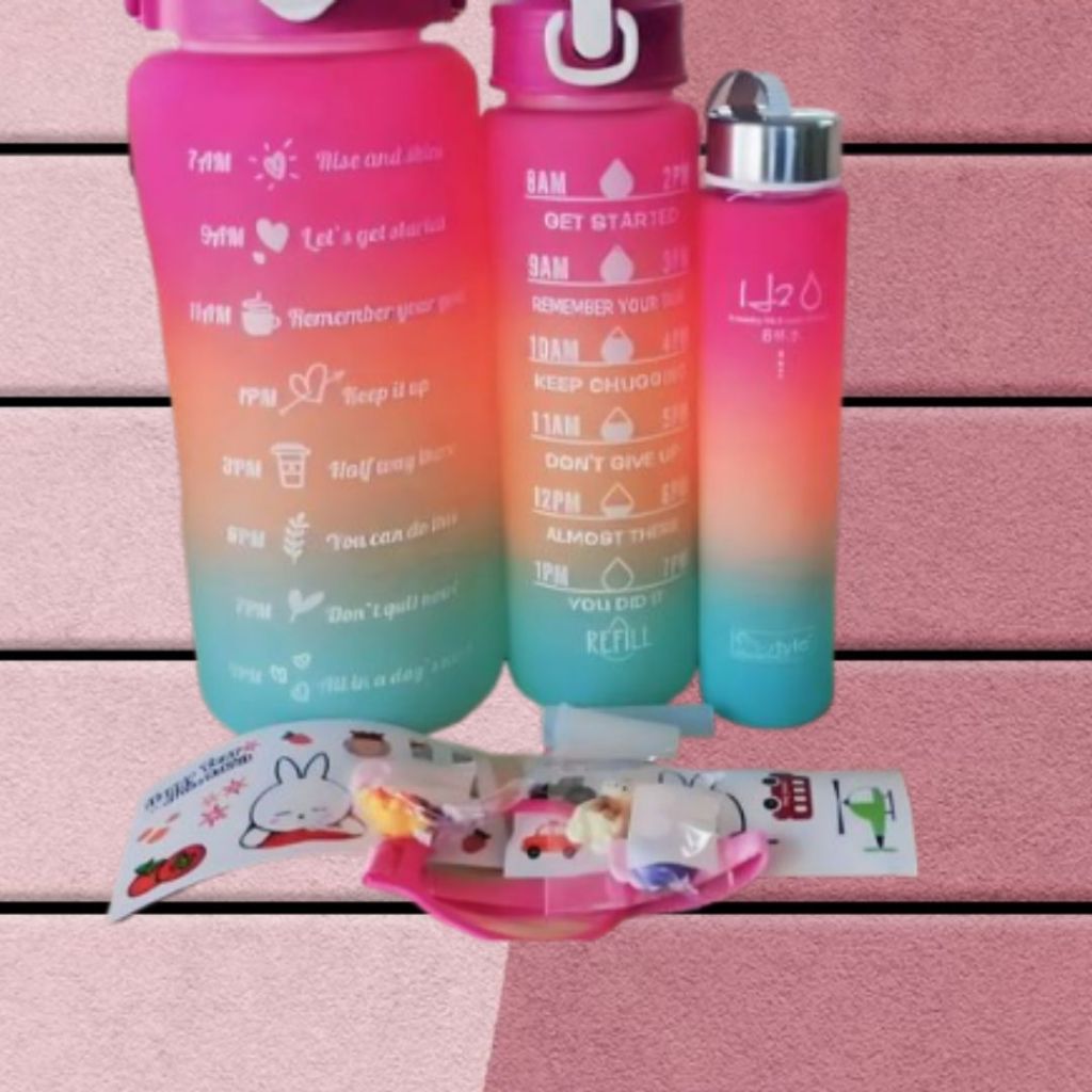 Kit 3 Garrafa De Água Squeeze Academia Com 2000ml 900ml E 300ml Portátil Adesivo CORES ALEATORIAS FSH