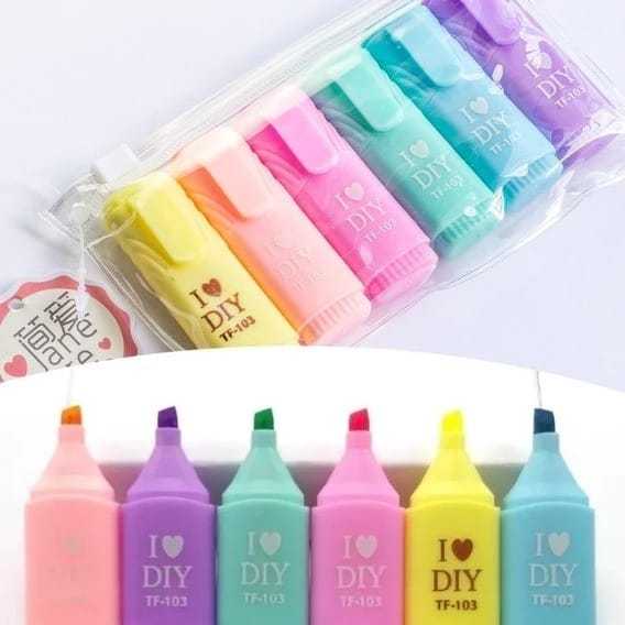 Kit com 6 Cores canetas Marca Texto Completo -Mini Marca Texto -Marcador -Constura