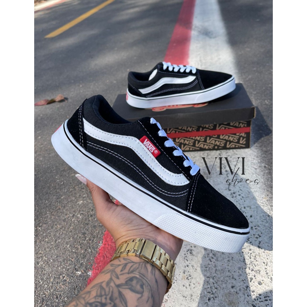 tenis preto old skool tradicional feminino e masculino casual unissex
