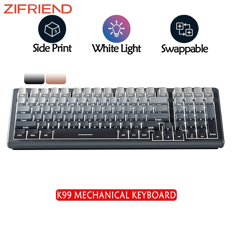 ZIFRIEND K99 Teclado Mecânico De Hotswap Side Esculpindo Luz Branca De Face Sul De Jogo Leve Com Fio