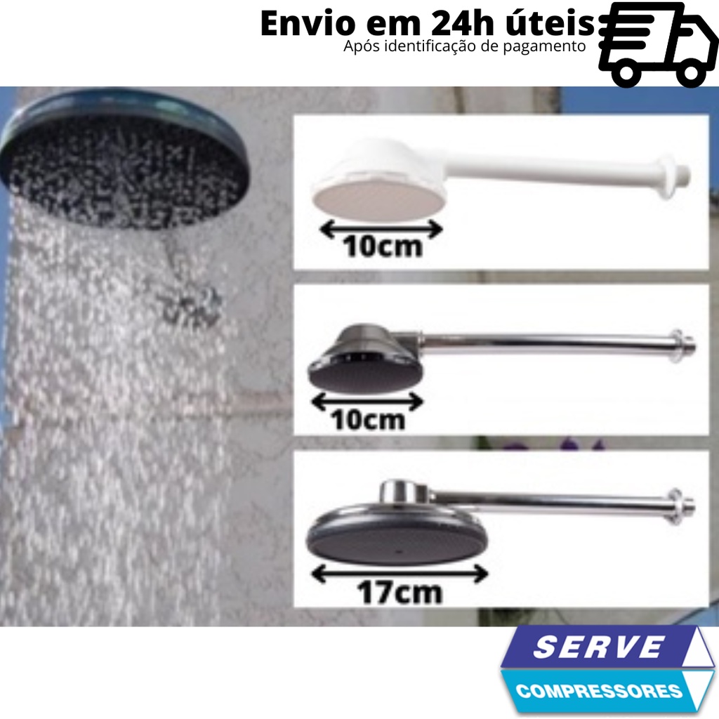 Ducha Fria + haste 4" e 7" Branco cromado Chuveirão Chuveiro Piscina Praia Verão Férias Banho Lazer