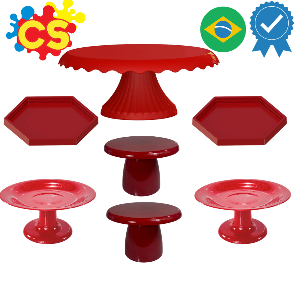 Kit Festa - Boleira Cake Renda 22 + 2 Mini Cake + 2 Boleira Mini Cogumelo + 2 Bandeja Decorativa Sextavada