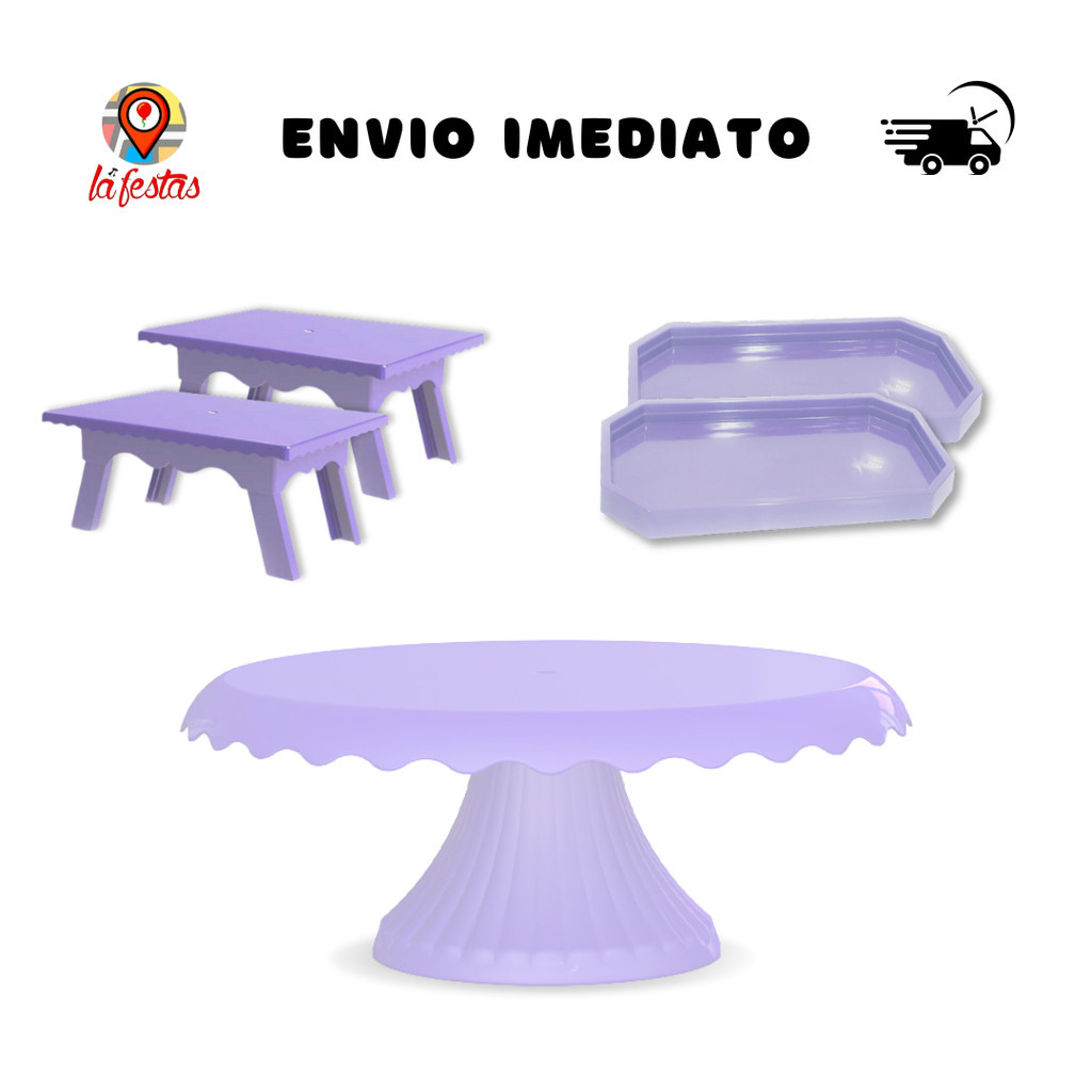 Kit Festa 1 Boleira Renda Cake 19cm + 2 Mesinhas + 2 Mini Lapidadas