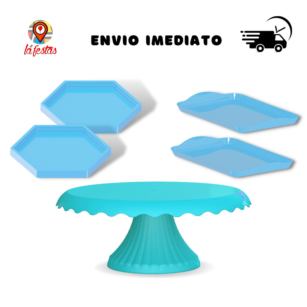 Kit Festa 1 Boleira Cake Renda 19cm + 2 Bandejas 20x13cm + 2 Mini Sextavadas (+21 cores)