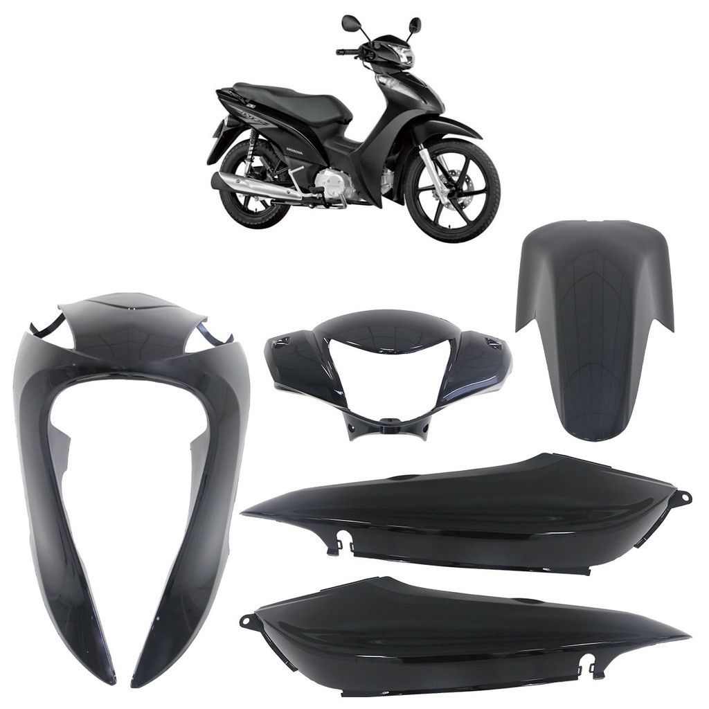 Kit Completo Carenagem Biz 125 2011 2012 2013 2014 Preto 5 Peças