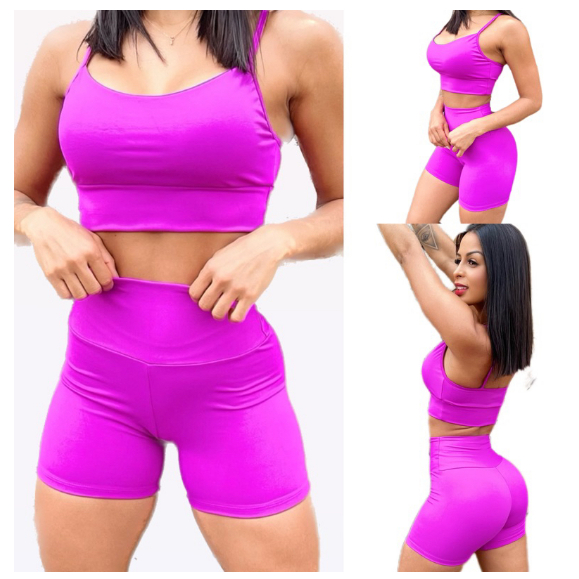 Conjunto Fitness Feminino Top + Short Roupas De Academia Ginástica Suplex {LC}