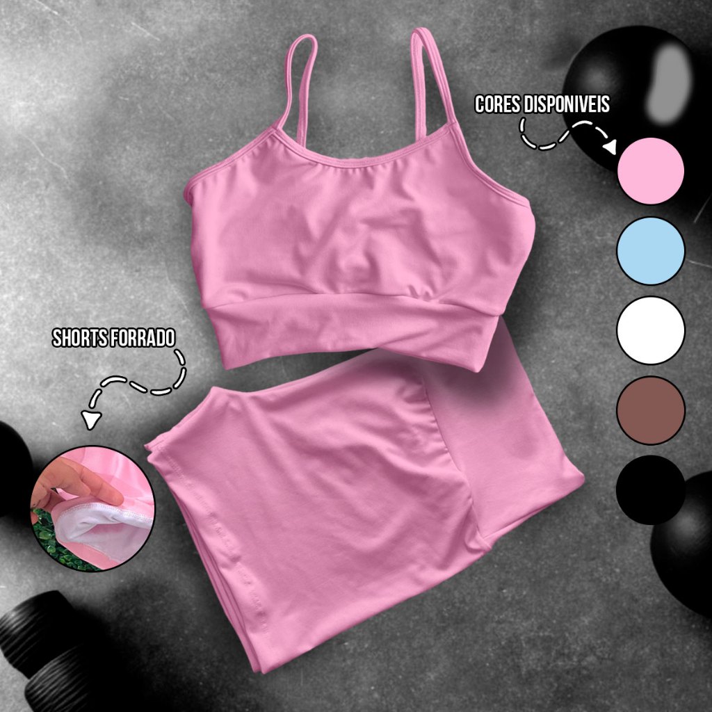 1 Conjunto Fitness Feminino Top + Short Roupas De Academia Ginástica Suplex Liso Estampado A19