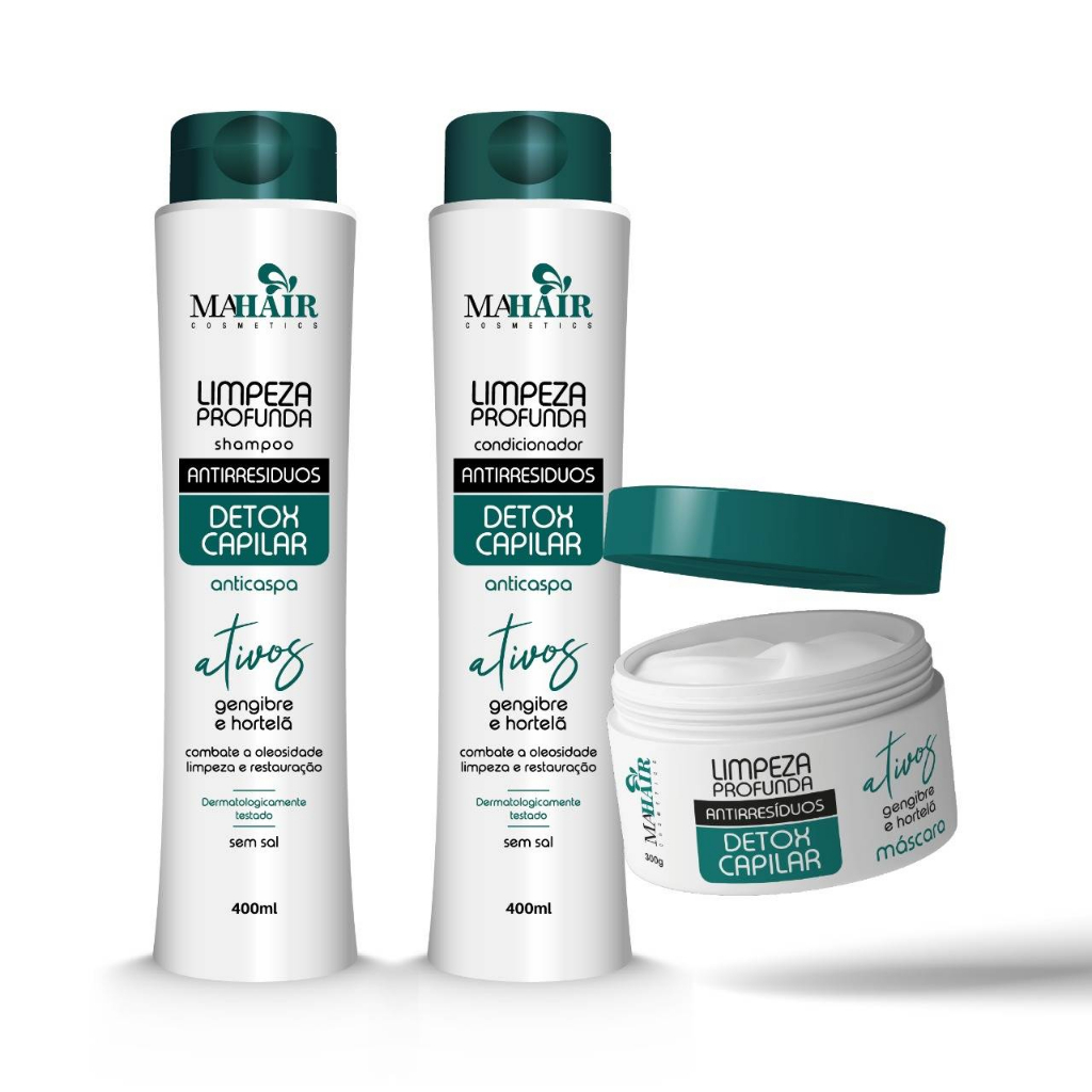 Kit Capilar Anti Resíduos Mahair Shampoo, Condicionador e Mascara
