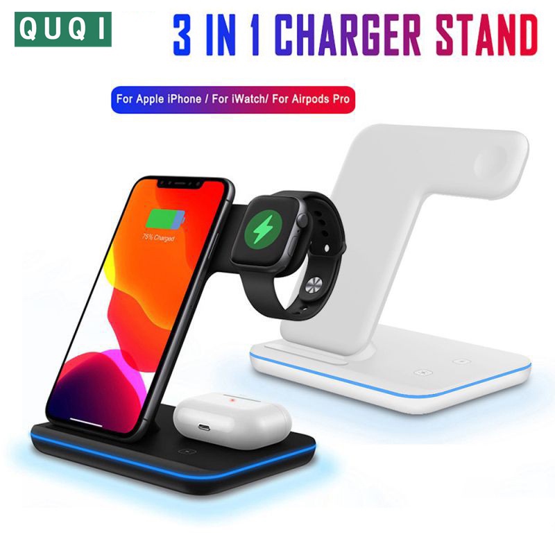 Suporte Carregador Sem Fio 3 Em 1 15W Para iPhone 13 Apple Watch 6 5 2 Airpods Pro