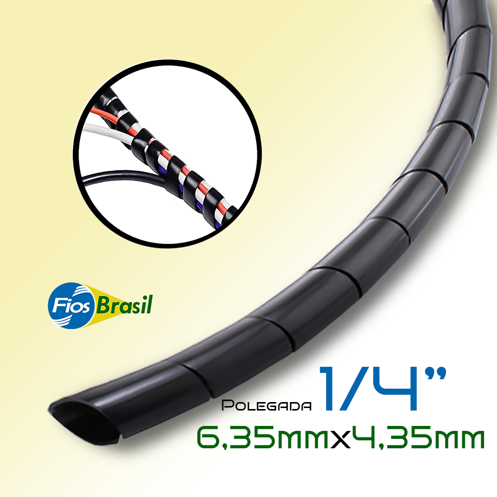 Organizador de Fios e Cabos Espiral 3 metros 6,35mm 1/4" protetor flexível organização elétricosInformatica fita preto branco espiroduto duto tubo Organização dos fios e cabos proteção