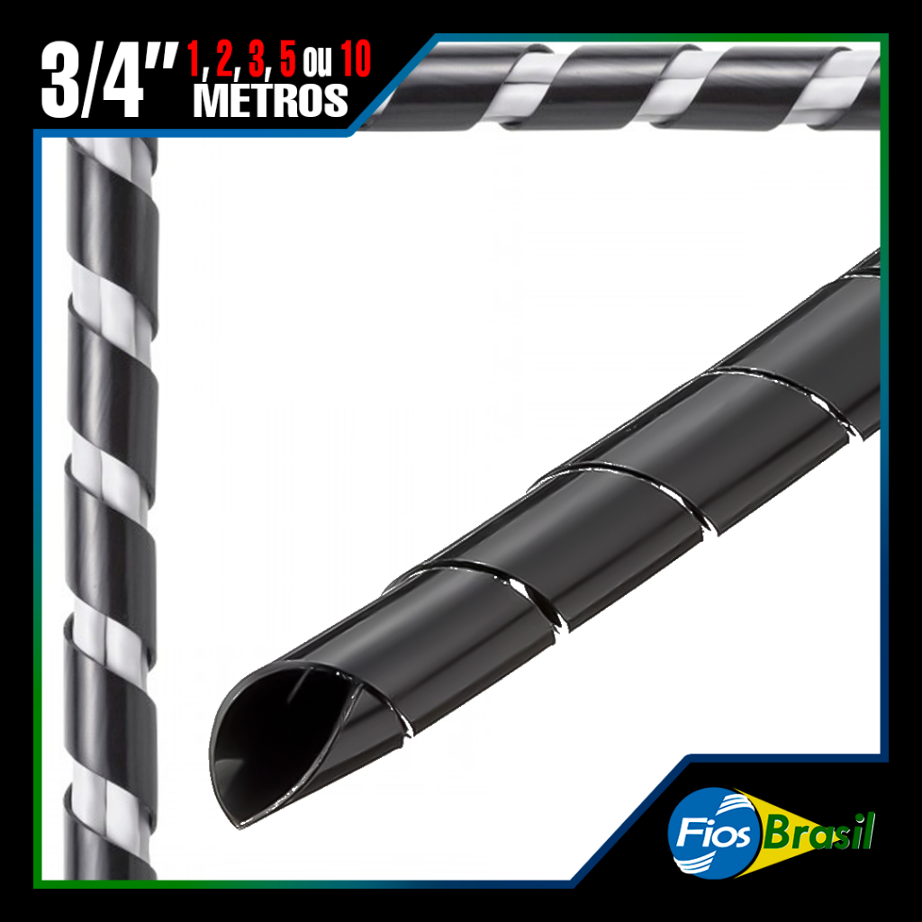 Organizador de fios cabos espiral 3/4 preto 1 metro