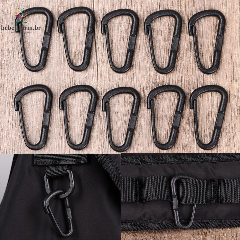 BEBETTFORM 10/20pçs Fivela De Plástico De Náilon Preto Com Mosquetão D