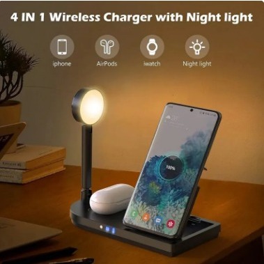 Night Light Carregador sem fio Stand, Estação de carregamento rápido, Dock para iPhone 15, 14, 13, 12, Samsung S22, S21, Apple Watch, Airpods, 4 em 1