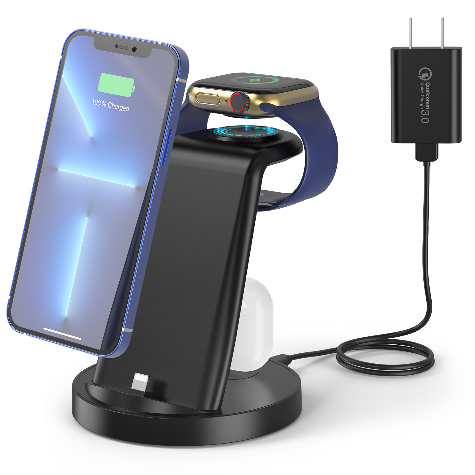 【 LTB � Suporte De Carregador Sem Fio Para Relógio Airpods , Estação De Carregamento 3 Em 1 Qi Quick Cushion IWatch 5 4