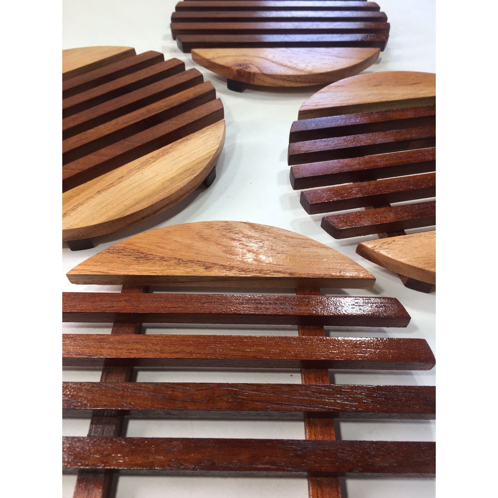 Kit com 4 Descanso de Panela de Madeira - Jogo com 4 unidades