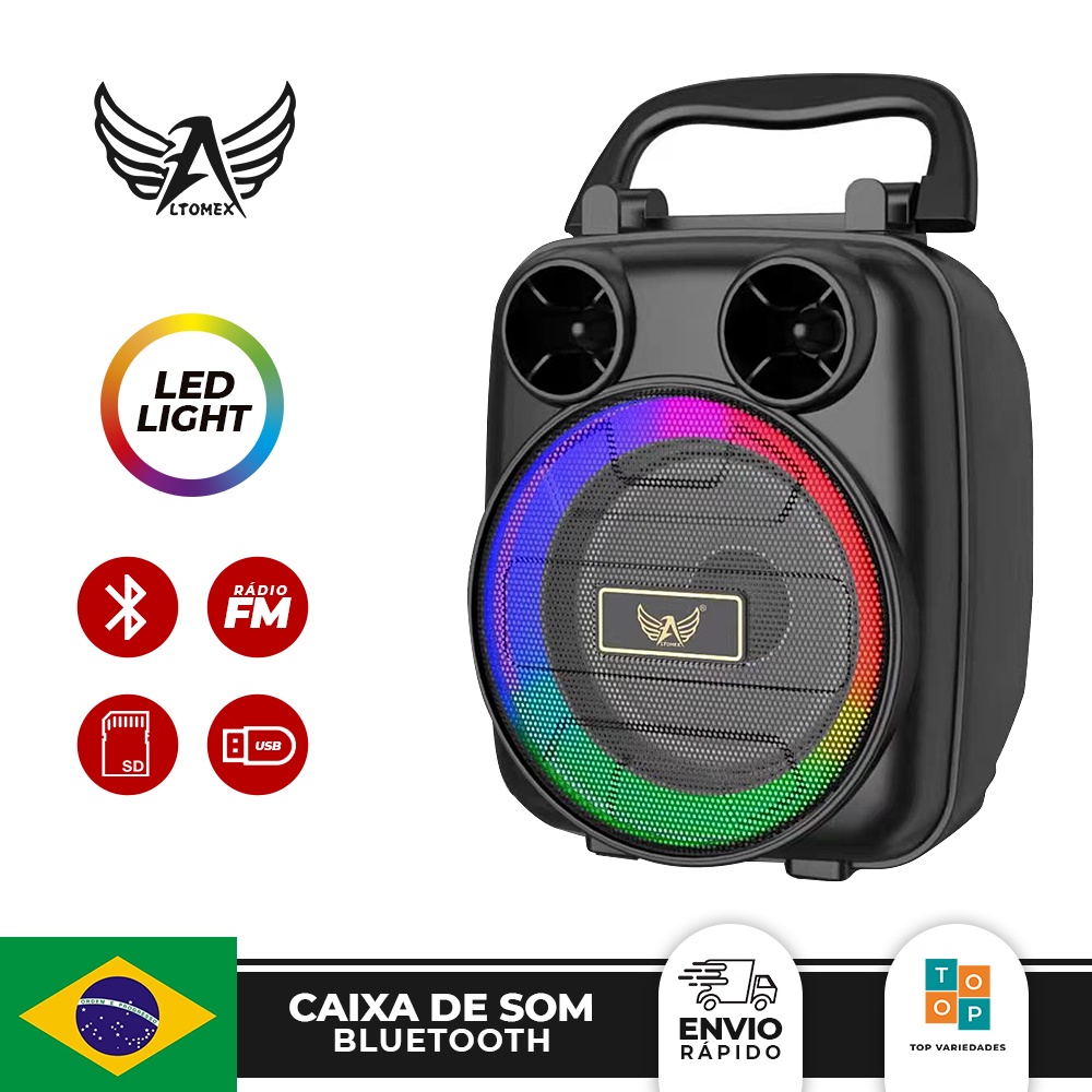 Caixa de Som Portátil Bluetooth com Led e Suporte de Celular Altomex - AL1098