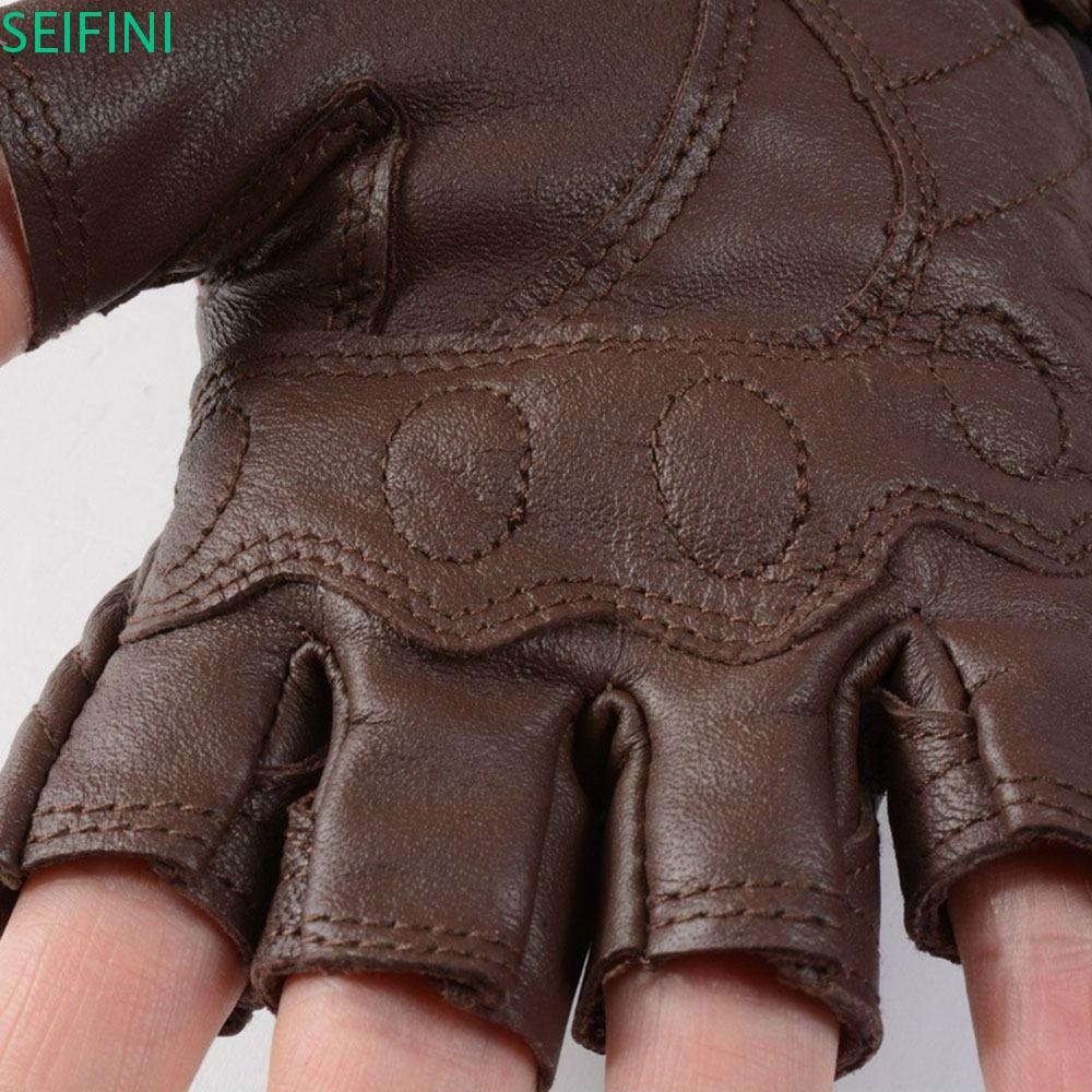 Luvas De Motocicleta SEIFINI , Corrida De Couro De Cabra Resistentes Ao Desgaste Retrô Sem Dedos Vintage Antiderrapantes De Meio Dedo Para Mulheres E Homens