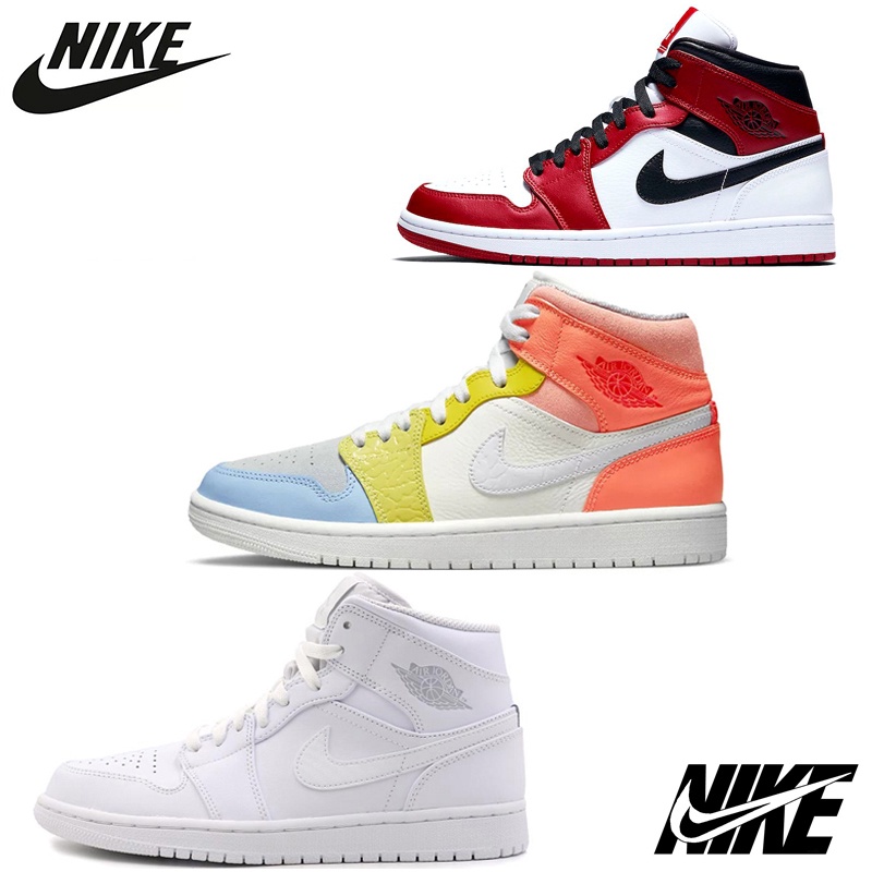 Nike Air Jordan 1 Mid AJ1 White Red Little Chicago Sapatos Esportivos Masculinos E Femininos De Basquetebol Casuais