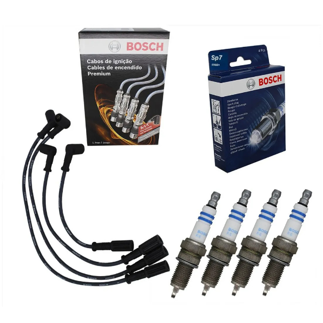 Kit Cabo de Ignição + Jogo de Velas BOSCH Fiat Mobi e Uno