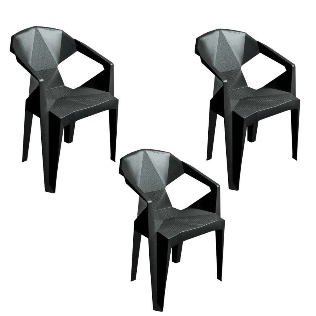 Kit 3 Cadeiras de Plástico Poltrona Preta 3D Lounge Reforçada Resistente Até 182kg Diamond