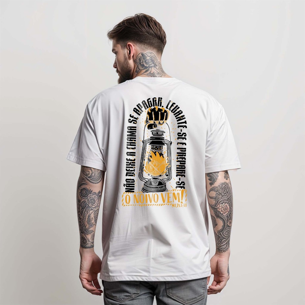 T-Shirt Masculina Camiseta A CHAMA DA FÉ - LAMPARINA Camisa 100% Algodão Street Wear
