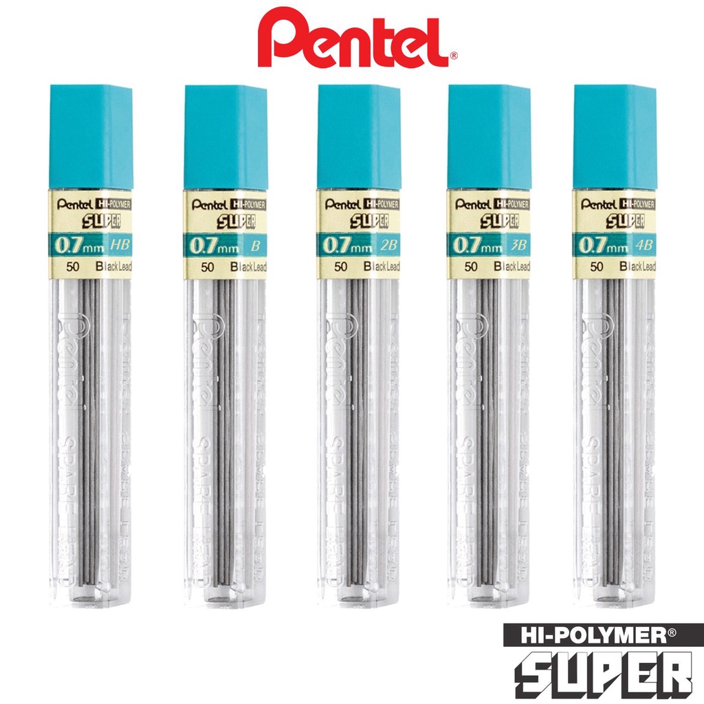 Kit 5 Tubos de Grafite Pentel Super Hi-Polymer 0,7mm 4b 3b 2b B e Hb - kit Completo Para Lapiseiras 0.7mm