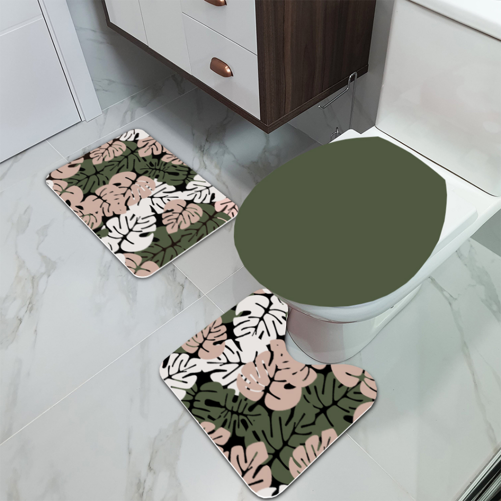 Tapete de Banheiro Antiderrapante Kit 3 Peças Costela de Adão Verde Dcorô