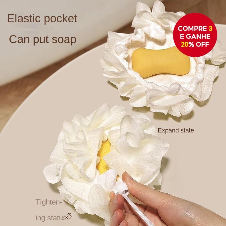 Esponja De Banho De Renda Floral Macia E Adequada Para A Pele-Saco De Armazenamento De Sabonete 2 Em 1 Gel Esfoliante