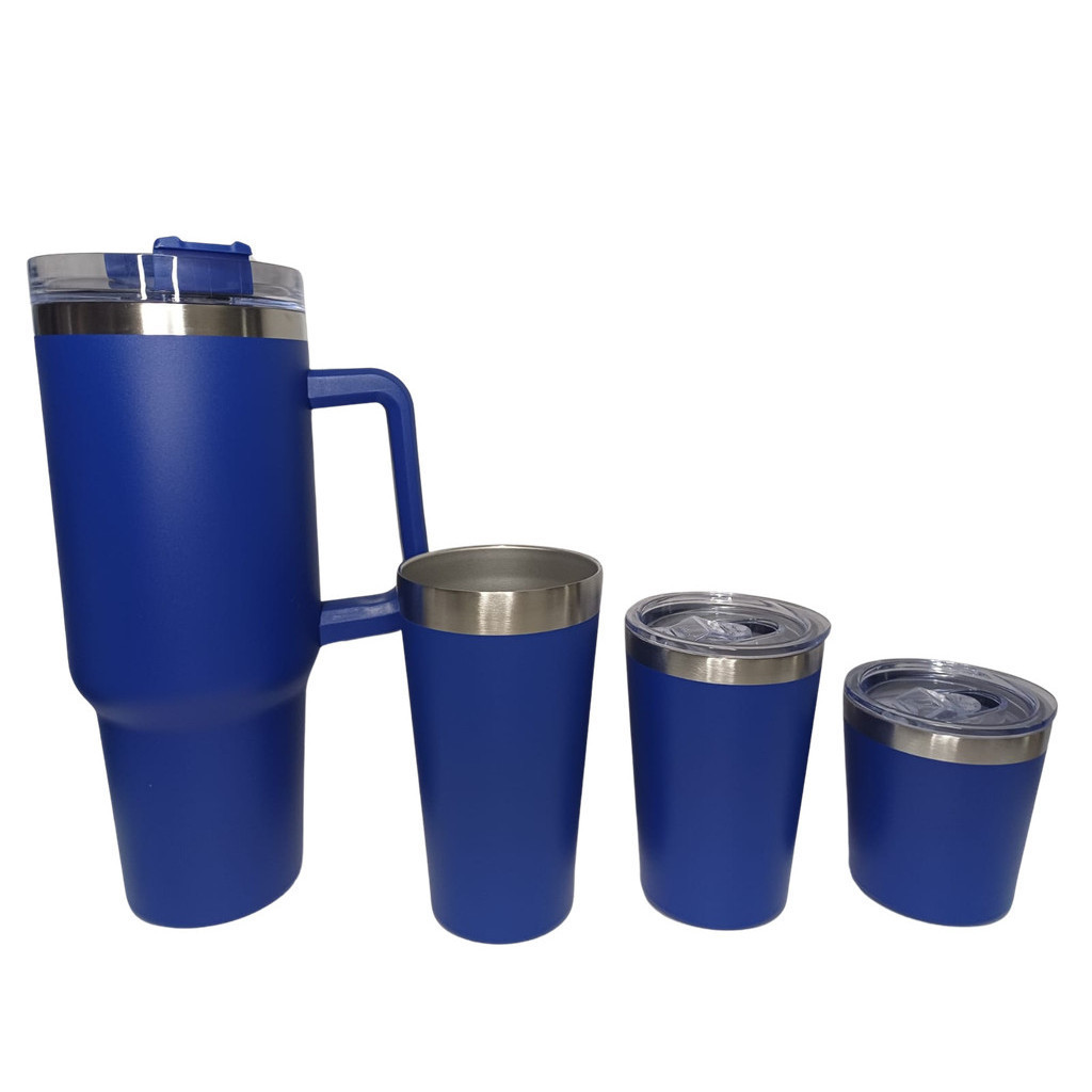 Kit Garrafa Copo Caneca Térmico Quencher Com Alça om Tampa 04 peças Aço Inox