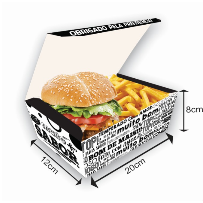 Embalagem Delivery Combo Hambúrguer Salgados Fritas 100 Unid