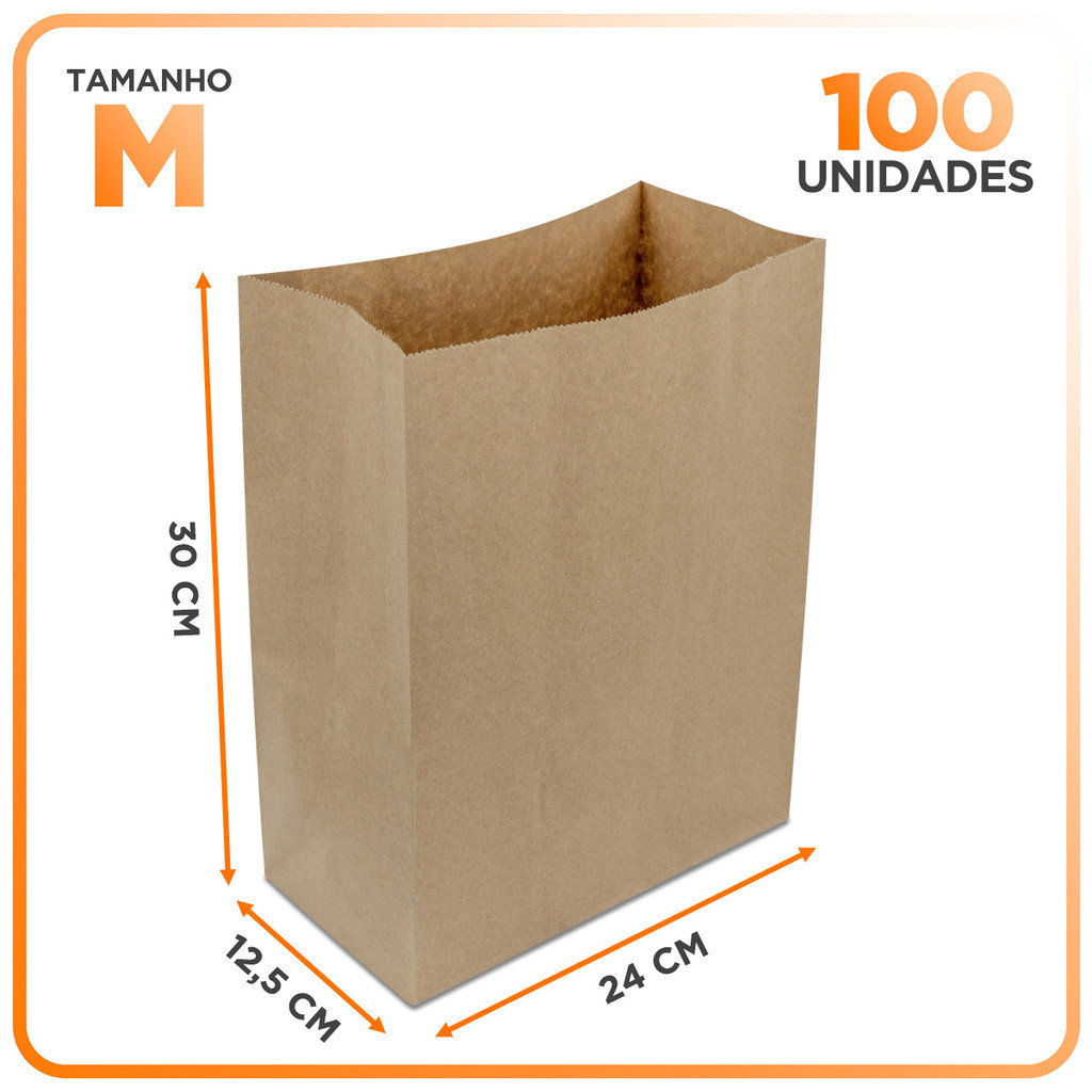 100 Sacos De Papel Kraft Natural 34 X 24 X 14 Cm Tamanho G - Melhor Sabor