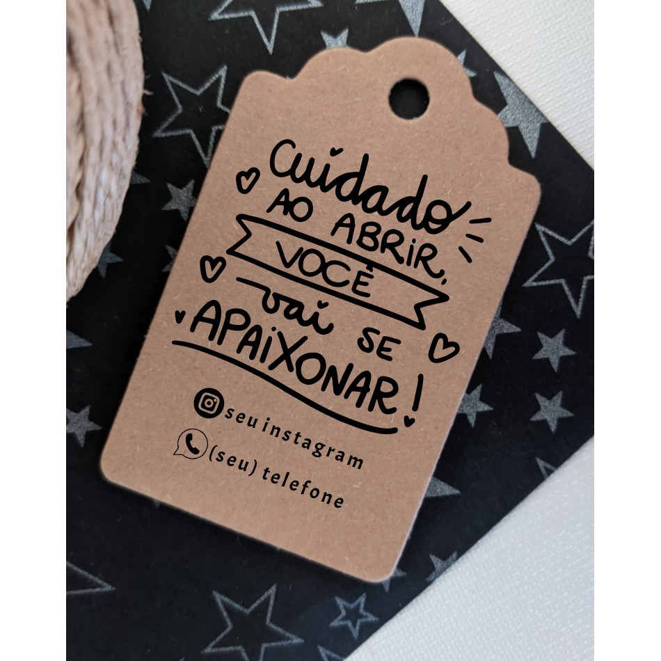 100 Tags papel Kraft Personalizada com Frases, Sacolas, Caixas, Presentes