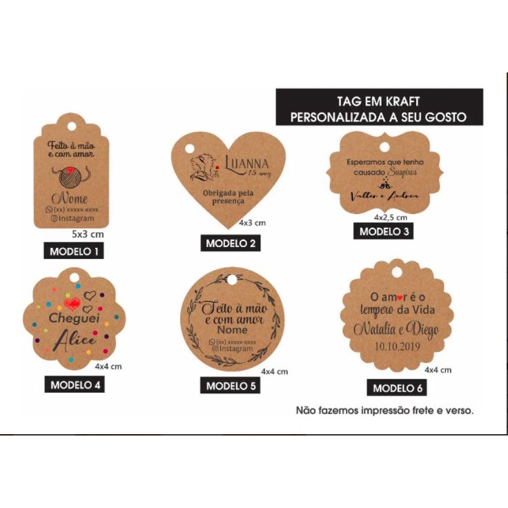 Tags Personalizada Tamanho 3,5x3,5cm Papel KRAFT ou OFFSET para embalagens presentes Lembrancinhas