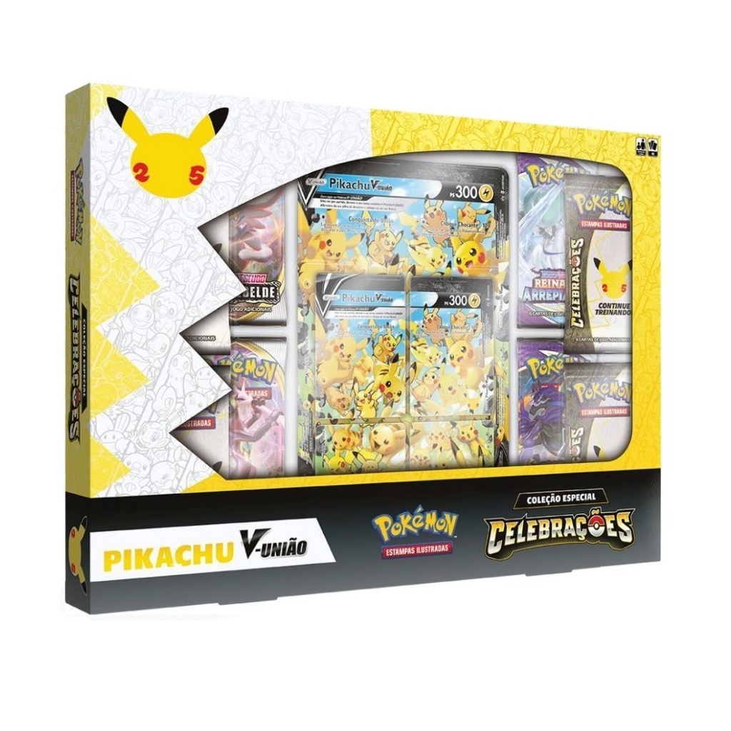 Box Pokémon Celebrações Pikachu V-Uniao, coleção especial 25 anos.