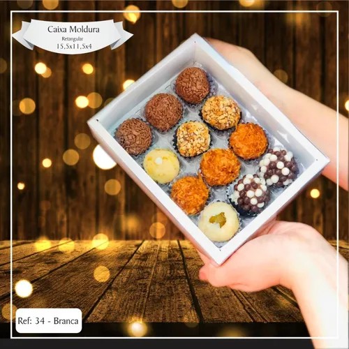 10 Caixas Embalagem 12 Doces Moldura Branca 15,5x11,5x4 - Ref. 34
