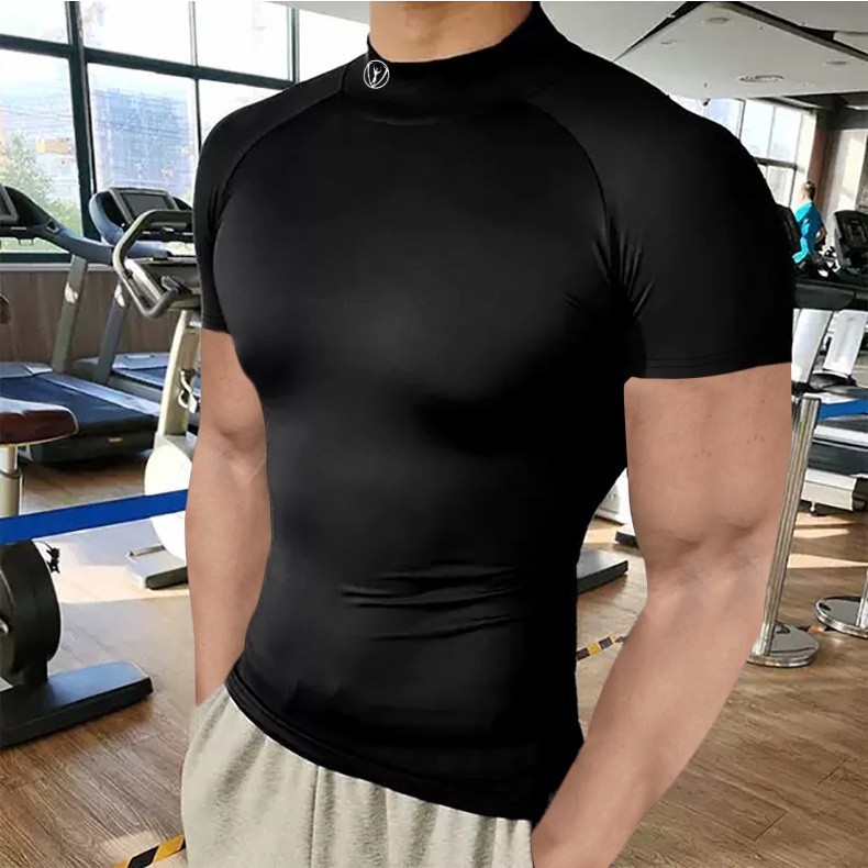 Camiseta De Compressão Masculina Gola Rulê Esportiva Ginásios Magros De Corrida Fitness Camisetas Esportivas Masculinas